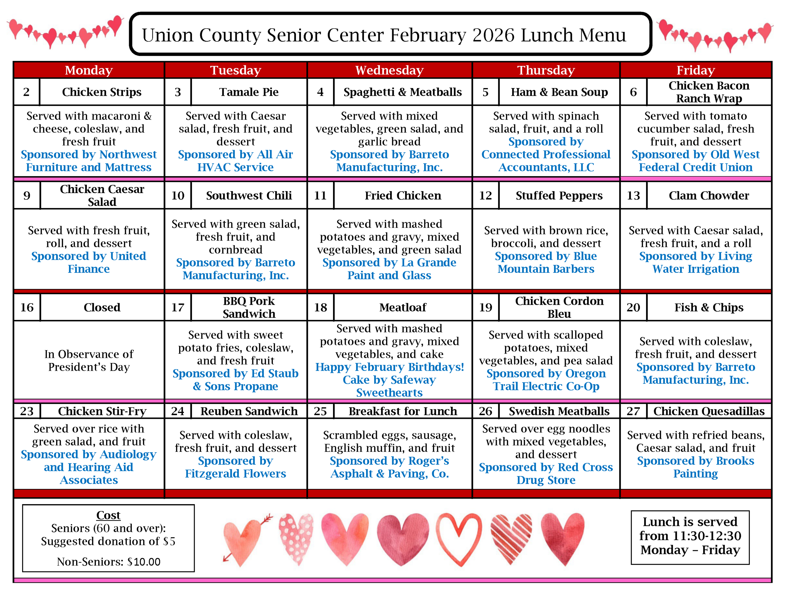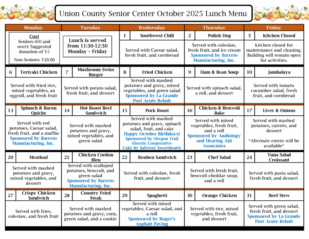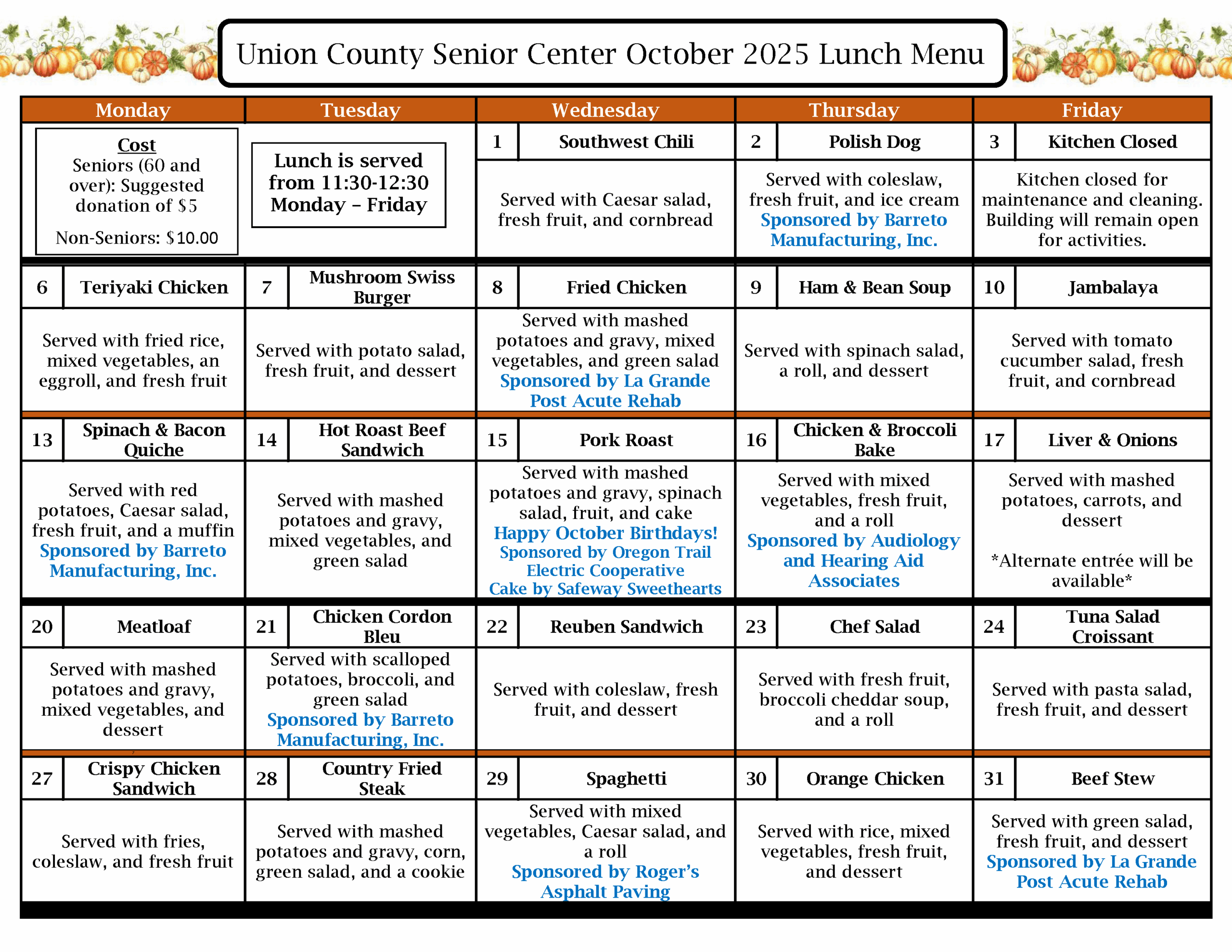 Join the newsletter to receive updates about our meal site menus, BINGO, events, and much more!